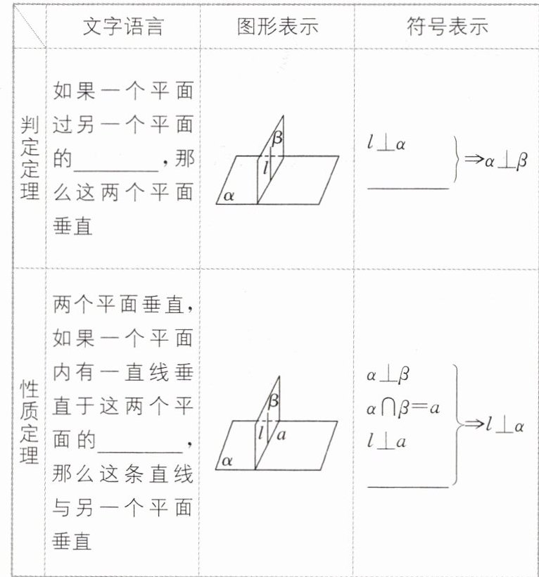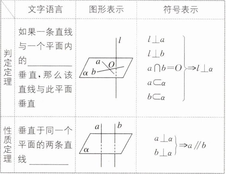 一条直线都垂直,我们就说直线 $ l $ 与平面 $ \alpha $ 互相垂直.(2) 直线与平面垂直的判定定理与性质定理