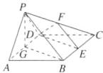 又 $PG\subset$ 平面 $PGB$,所以平面 $PGB\perp$ 平面 $ABCD$,所以平面 $DEF\perp$ 平面 $ABCD$。