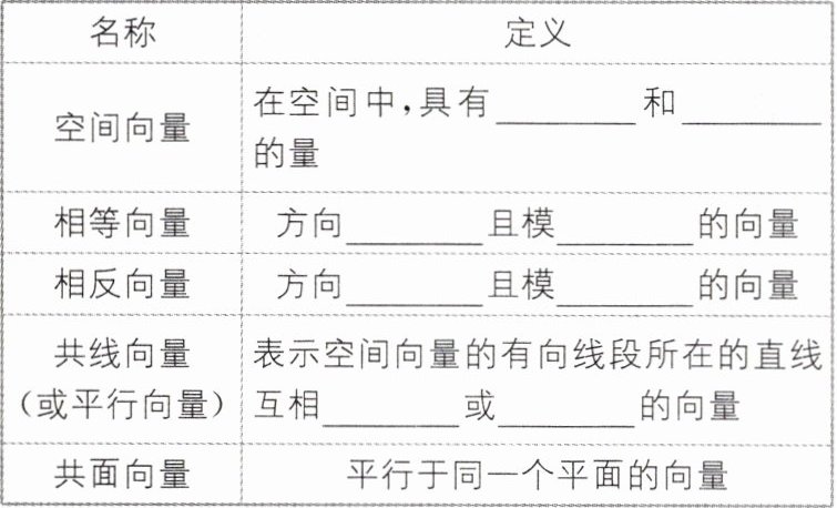 (1)共线向量定理:对任意两个空间向量 $a,b(b\neq 0)$,$a// b$ 的充要条件是存在实数 $\lambda$,使得.
