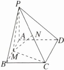 例 3 如图,已知 $PA\perp$ 平面 $ABCD$,四边形 $ABCD$ 为矩形,$PA = AD$,$M,N$ 分别为 $AB,PC$ 的中点,求证: