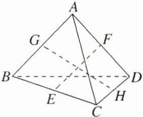 例 2 如图,正四面体 $A - BCD$(所有棱长均相等)的棱长为 $1$,$E,F,G,H$ 分别是正四面体 $ABCD$ 中各棱的中点,设 $\overrightarrow{AB}=a,\overrightarrow{AC}=b,\overrightarrow{AD}=c$,试采用向量法解决下列问题: