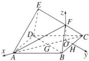又四边形$ABCD$为正方形,所以$AC\perp BD$,所以$OH\perp AC$,故以$O$为原点,建立如图所示的空间直角坐标系,则$A(3,0,0)$,$C(-1,0,0)$,$D(1,-2,0)$,$F(0,0,\sqrt{3})$,$B(1,2,0)$。