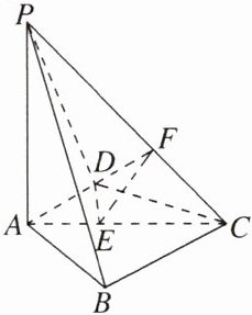 法二 如图所示, 过点 $ D $ 作 $ DE \perp AC $ 于 $ E $, 再过点 $ E $ 作 $ EF \perp CP $ 于 $ F $, 连接 $ DF $, 因为 $ PA \perp $ 平面 $ ABCD $, 所以平面 $ PAC \perp $ 平面 $ ABCD $, 而平面 $ PAC \cap $ 平面 $ ABCD = AC $, 所以 $ DE \perp $ 平面 $ PAC $, 故 $ DE \perp CP $, 又 $ EF \perp CP $, 且 $ DE $, $ EF \subset $ 平面 $ DEF $, 所以 $ CP \perp $ 平面 $ DEF $, 根据二面角的定义可知, $ \angle DFE $ 即为二面角 $ A - CP - D $ 的平面角, 即 $ \sin \angle DFE = \frac{\sqrt{42}}{7} $, 即 $ \tan \angle DFE = \sqrt{6} $.