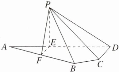如图, 平面四边形 $ ABCD $ 中, $ AB = 8 $, $ CD = 3 $, $ AD = 5\sqrt{3} $, $ \angle ADC = 90° $, $ \angle BAD = 30° $, 点 $ E $, $ F $ 满足 $ \overrightarrow{AE} = \frac{2}{5} \overrightarrow{AD} $, $ \overrightarrow{AF} = \frac{1}{2} \overrightarrow{AB} $. 将 $ \triangle AEF $ 沿 $ EF $ 翻折至 $ \triangle PEF $, 使得 $ PC = 4\sqrt{3} $.