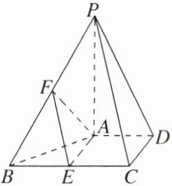 (2025·泉州模拟) 如图,在四棱锥 $ P - ABCD $ 中,$ PA \perp $ 平面 $ ABCD $,$ PB = PC = 2\sqrt{6} $,$ PA = BC = 2AD = 2CD = 4 $,$ E $ 为 $ BC $ 中点,点 $ F $ 在棱 $ PB $ 上(不包括端点).