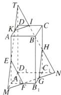 训练1 D [如图,直线$GF$交$D_1A_1$的延长线于点$M$,交$D_1C_1$的延长线于点$N$,因为四边形$A_1B_1C_1D_1$为正方形,所以$A_1M = \frac{1}{2}D_1A_1$,$C_1N = \frac{1}{2}D_1C_1$,连接$ME$并延长交$AD$于点$K$,交$DD_1$的延长线于点$T$,所以$K$为$AD$的中点,连接$TN$,分别交$CD$,$CC_1$于点$I$,$H$,则$I$,$H$分别为$CD$,$CC_1$的中点,连接$KI$,$GH$,$EF$,则六边形$EFGHIK$即为过点$E$,$F$,$G$的平面截正四棱柱$ABCD - A_1B_1C_1D_1$所得的截面多边形,因为$A_1D_1 = 2$,$AA_1 = 4$,$EF = GH = EK = HI = \sqrt{5}$,$FG = KI = \sqrt{2}$,所以六边形$EFGHIK$的周长为$2\sqrt{2}+4\sqrt{5}$。]