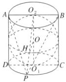 (2023·南通模拟)已知在圆柱 $O_1O_2$ 内有一个球 $O$,该球与圆柱的上、下底面及母线均相切.过直线 $O_1O_2$ 的平面截圆柱得到四边形 $ABCD$,其面积为 8.若 $P$ 为圆柱底面圆弧 $\overset{\frown}{CD}$ 的中点,则平面 $PAB$ 与球 $O$ 的交线长为________.
