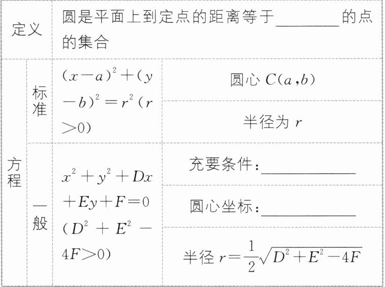 1.定长 $D^{2}+E^{2}-4F>0$ $\left(-\frac{D}{2},-\frac{E}{2}\right)$