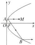 (2)抛物线有如下光学性质:从抛物线的焦点$F$发出的光线,经抛物线反射后,得到的是一系列的与抛物线对称轴平行(或重合)的光线。若一条平行于$x$轴的光线从$M(3,1)$射出,经抛物线$y^{2}=4x$上的点$A$反射后,再经抛物线上的另一点$B$反射出,则直线$AB$的斜率为