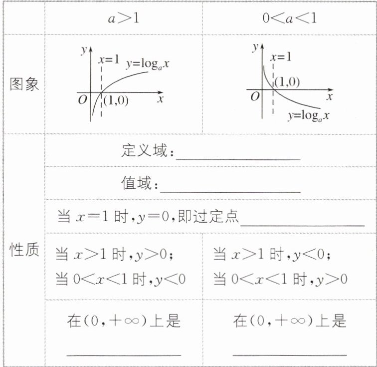 (1) 概念:函数 $ y = \log_a x (a > 0 $,且 $ a \neq 1) $ 叫做对数函数,其中 $ x $ 是自变量,定义域是 $ (0, +\infty) $。