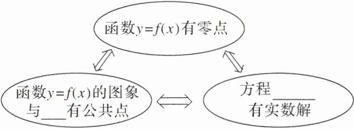 的实数 $ x $ 叫做函数 $ y = f(x) $ 的零点.(2) 函数的零点、函数的图象与 $ x $ 轴的交点、对应方程的根的关系: