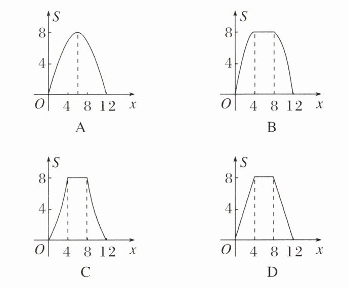 已知正方形$ABCD$的边长为4,动点$P$从$B$点开始沿折线$BCDA$向$A$点运动. 设点$P$运动的路程为$x$,$\triangle ABP$的面积为$S$,则函数$S = f(x)$的图象是 (