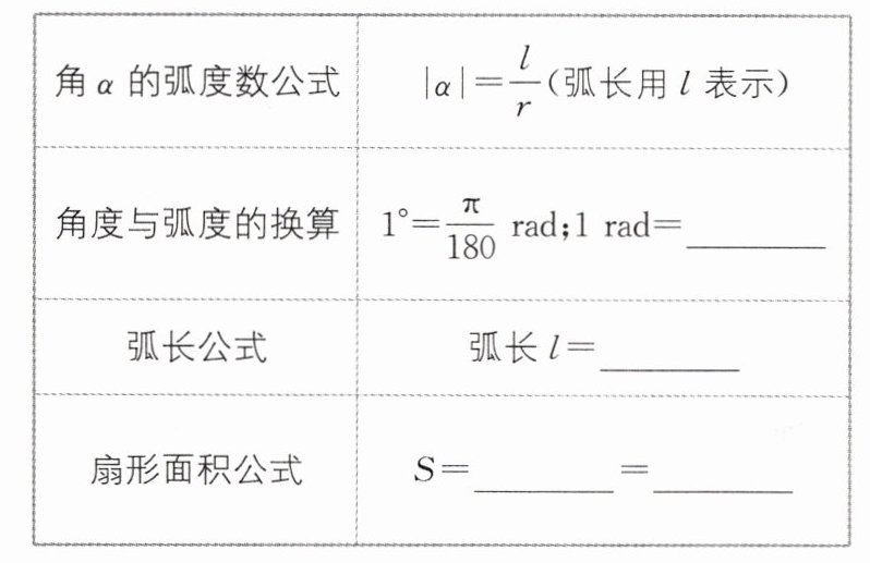 的圆弧所对的圆心角叫做$1$弧度的角,记作$1\ rad$.(2) 公式