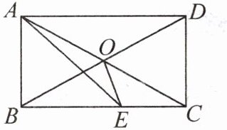1. 如图,矩形ABCD的对角线AC,BD相交于点O,$∠BAD$的平分线AE交BC于点E,连接OE.若$∠AOB=60^{\circ}$,则$∠BOE$的度数是(
