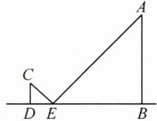 例2 [2023秋·法库县期中]综合实践活动课上,同学们开展了测量本校旗杆高度的实践活动.如图,他们在旗杆底部所在的平地上放置一个平面镜E来测量学校旗杆AB的高度,镜子中心E与旗杆的距离$EB=20m$.当镜子中心E与测量者的距离$DE=2m$时,测量者刚好从镜子中看到旗杆顶部的端点A.已知测量者的身高为1.6m,测量者的眼睛距地面的高度为1.5m.