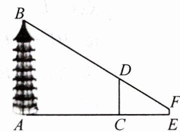 例1 如图,AB表示塔的高度,CD表示竹竿顶端到地面的高度,EF表示人眼到地面的高度,AB,CD,EF在同一平面内,点A,C,E在一条水平直线上.已知$AC=20m$,$CE=10m$,$CD=7m$,$EF=1.4m$,从点F远眺塔顶B,视线恰好经过竹竿的顶端D.根据以上信息,求塔的高度.