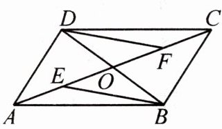 因为$OE = OF$,$OB = OD$,所以四边形$DEBF$是平行四边形(对角线互相平分的四边形是平行四边形)。