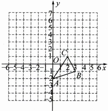 (2)$△ABC$关于$y$轴对称的$△A_{2}B_{2}C_{2}$的三个顶点坐标分别为$A_{2}(0,-2)$,$B_{2}(-3,-1)$,$C_{2}(-2,1)$。