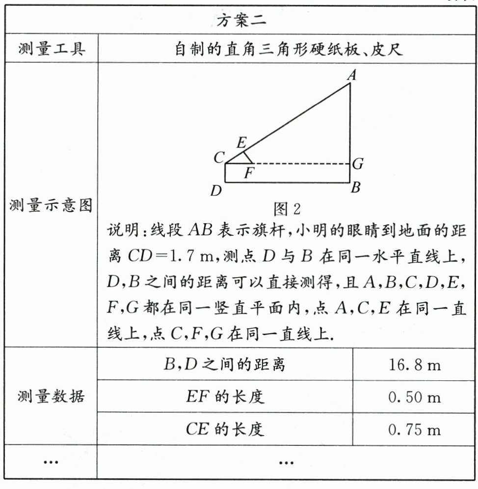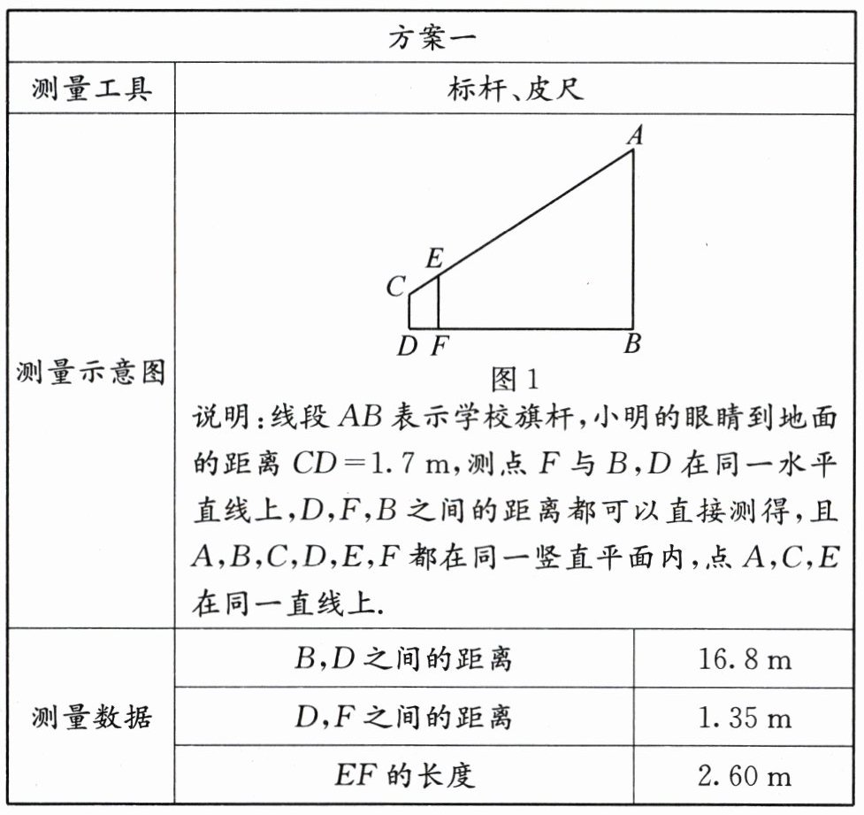 任务一:根据上述方案及数据,请你选择一个方案,求出学校旗杆AB的高度(结果精确到0.1 m).