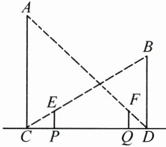 22. (12分)如图,小王同学在晚上由路灯A走向路灯B,当他走到P处时发现,他在路灯B下的影长为2 m,且末端恰好位于路灯A的正下方C处.接着他又走了6.5 m到Q处,此时他在路灯A下的影子末端恰好位于路灯B的正下方D处.已知小王身高1.8 m,路灯B高9 m.