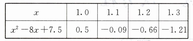 3. 根据表格确定方程 $ x ^ { 2 } - 8 x + 7.5 = 0 $ 的一个解的范围是