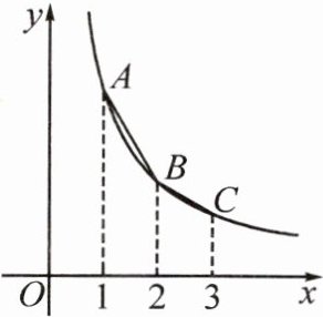 2. 如图,双曲线$y =\frac{k}{x}(k > 0,x > 0)$上的三点$A,B,C$的横坐标分别为$1,2,3$.若$AB = 2BC$,求该双曲线的表达式.