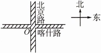 例2 如图,某市区南北走向的北京路与东西走向的喀什路相交于点O处。甲沿着喀什路以4m/s的速度由西向东走,乙沿着北京路以3m/s的速度由南向北走。当乙走到点O以北50m处时,甲恰好到点O处。若两人继续向前行走,求两个人相距85m时各自的位置。