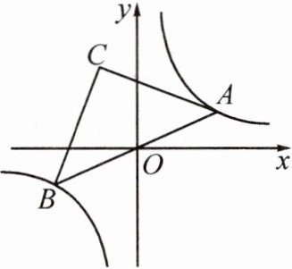 1. 如图,A 是双曲线 $ y = \frac{4}{x} $ 在第一象限上的一动点,连接 AO 并延长,交另一分支于点 B,以 AB 为斜边作等腰直角三角形 ABC,点 C 在第二象限。随着点 A 的运动,点 C 的位置也不断的变化,但始终在一函数图象上运动,求这个函数的表达式。
