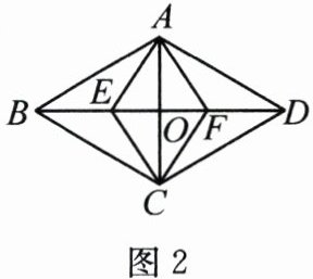 20. (8分)小颖新买了一盏简单而精致的吊灯(图1),其正面的平面图如图2所示,四边形ABCD是一个菱形外框架,对角线AC,BD相交于点O,四边形AECF是其内部框架,且点E,F在BD上,$BE=DF$.