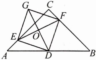 因为$O$是$EF$中点,$GO = DO$,所以四边形$EDFG$是平行四边形(对角线互相平分的四边形是平行四边形)。