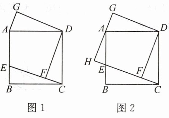 【实践探究】(2)小睿受此问题启发,逆向思考并提出新的问题:如图 2,在正方形 $ABCD$ 中,$E$ 是边 $AB$ 上一点,$DF\perp CE$ 于点 $F$,$AH\perp CE$ 交 $CE$ 的延长线于点 $H$,$GD\perp DF$,交 $HA$ 的延长线于点 $G$,可以用等式表示线段 $FH$,$AH$,$CF$ 的数量关系,请你思考并说明理由。