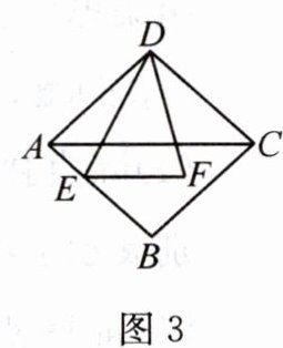 【拓展提高】(3)如图 3,在菱形 $ABCD$ 中,$E$ 是 $AB$ 上一点,$F$ 是 $\triangle ABC$ 内一点,$AC// EF$,$AC = 2EF$,$\angle EDF = \frac{1}{2}\angle BAD$。若 $AE = 2$,$DF = 6$,求菱形 $ABCD$ 的边长。