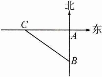 在$Rt\triangle ABC$中,$BC = 500km$,$BA = 300km$,根据勾股定理可得$AC=\sqrt{BC^{2}-BA^{2}}=\sqrt{500^{2}-300^{2}} = 400km$。
