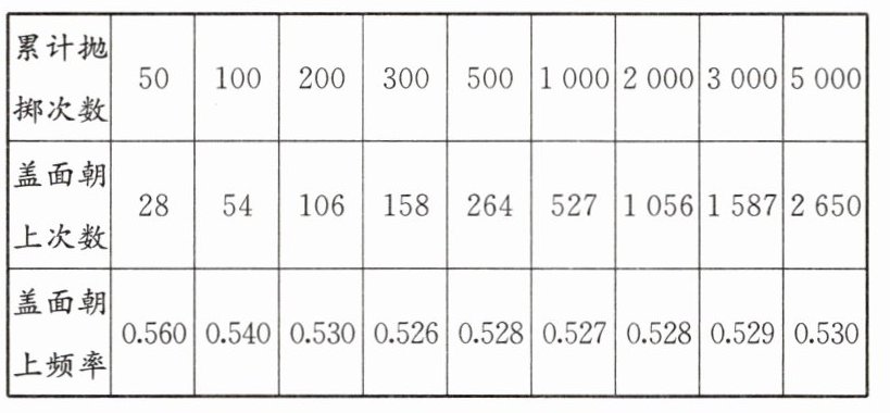 2. [2023·兰州]某学习小组做抛掷一枚瓶盖的试验,整理的试验数据如下表所示: