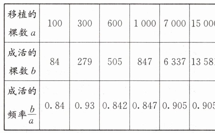 2. [2023·恩施州改编]县林业部门考察银杏树苗在一定条件下移植的成活率,所统计的银杏树苗移植成活的相关数据如下表所示: