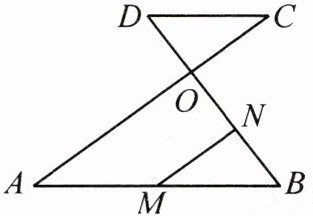 3. [2023·哈尔滨]如图,AC,BD相交于点O,$AB// DC$,M是AB的中点,$MN// AC$,交BD于点N.若$DO:OB=1:2,AC=12$,则MN的长为 (