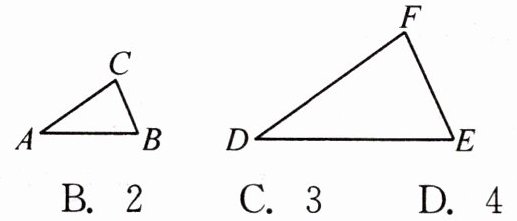 1. 如图,$\triangle ABC \backsim \triangle DEF$,相似比为$1:2$。若$BC = 1$,则$EF$的长是(