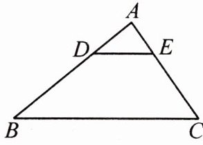 3. [2022·湖州]如图,已知在$\triangle ABC$中,$D$,$E$分别是$AB$,$AC$上的点,$DE // BC$,$\frac{AD}{AB} = \frac{1}{3}$。若$DE = 2$,则$BC$的长为