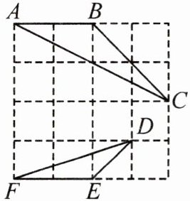 根据勾股定理,在$\triangle DEF$中,$DE=\sqrt{1^{2}+1^{2}}=\sqrt{2}$,$EF = 2$,$DF=\sqrt{1^{2}+3^{2}}=\sqrt{10}$;在$\triangle ABC$中,$AB = 2$,$BC=\sqrt{2^{2}+2^{2}} = 2\sqrt{2}$,$AC=2\sqrt{3}$。