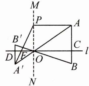 (2)已知光线 AP 平行于主光轴 l,经过凸透镜 MN 折射后通过焦点 F,求凸透镜的焦距 OF 的长约为