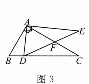 ;(2)如图 3,在 Rt△ABC 和 Rt△ADE 中,∠BAC = ∠DAE = 90°,∠ACB = ∠AED = 30°,点 D 在边 BC 上,AC 与 DE 交于点 F,$\frac{DF}{CF}=\frac{5\sqrt{3}}{6}$,求$\frac{AD}{BD}$的值;