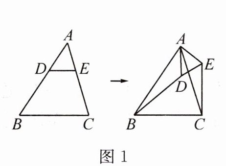 如图 1,把 A 字形相似的两个三角形中的一个固定,另一个三角形绕其公共顶点旋转,在旋转的过程中生成一对新的相似三角形.
