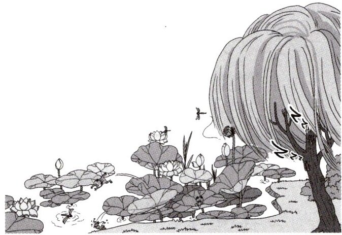 塘里洗了个澡,乐得它鼓起腮帮子,敲起了绿色