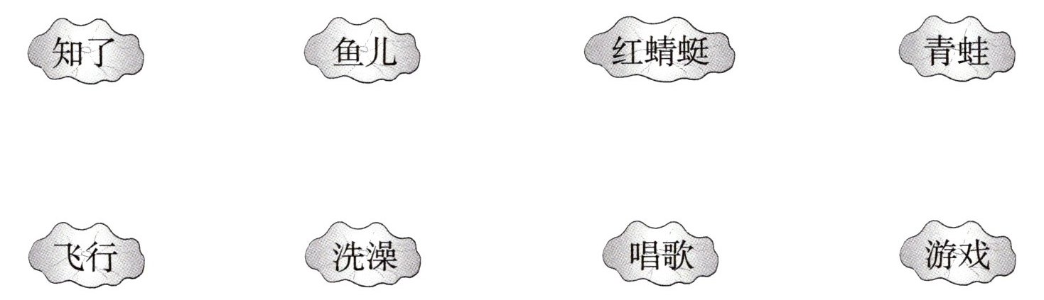 1. 读一读短文,想一想小动物们在干什么,连一连。