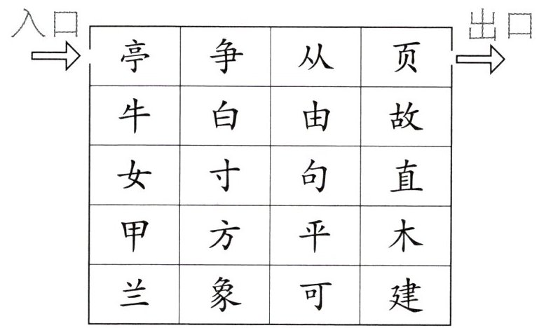 分别连:亭 牛 白 寸 方 象 可 建 木 直 故