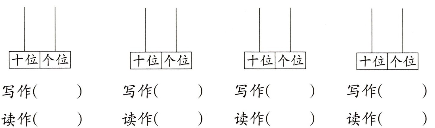 8. 用4颗珠子在计数器上表示两位数,画一画,写一写,读一读。