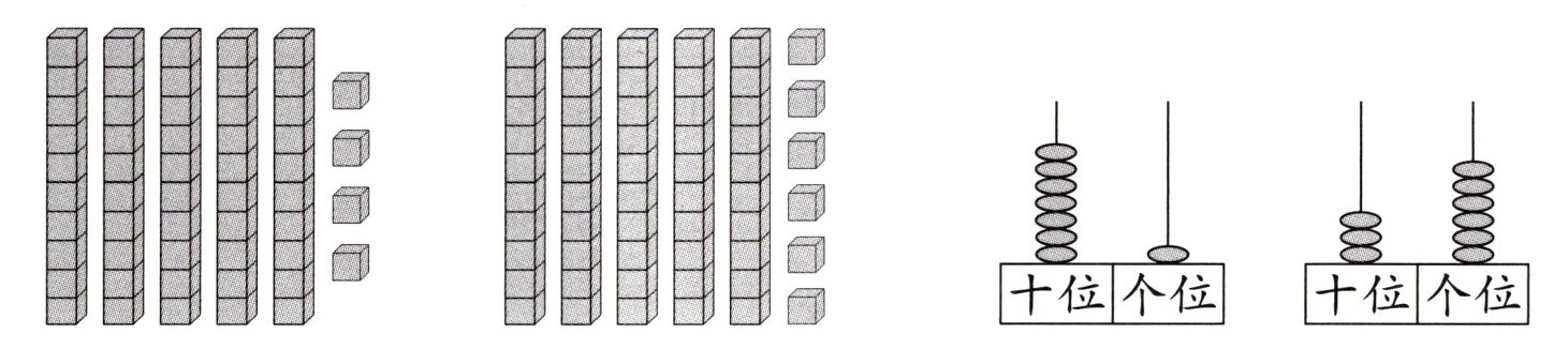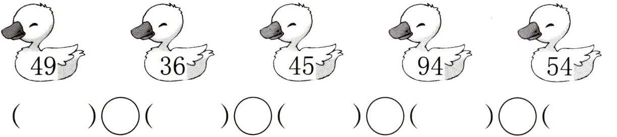 (3)上面这些数中,最接近50的数是(),它里面有()个十和()个一,再添上()个一是50。