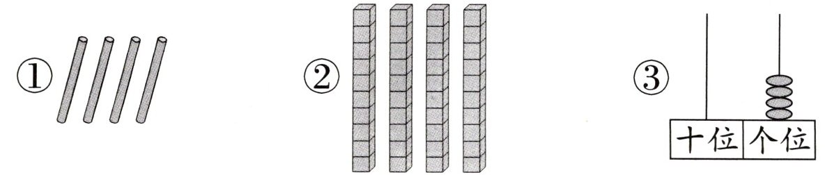 (1)下面各数中的“4”与43中的“4”表示的意义相同的是()。