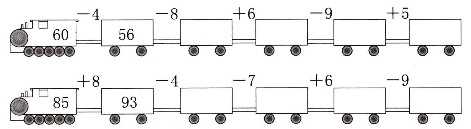 55 + 6 = 24 - 7 = 5 + 67 = 58 - 4 =