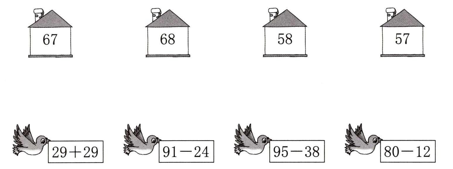 $81 - 7 = \square 4$ $95 - 20 = \square 5$ $47 - 25 = \square 2$